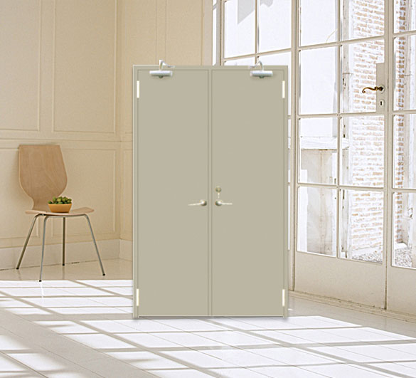 用鋼質材料制作門框、門扇骨架和門扇面板,門扇內若填充材料,則填充對人體無害的防火隔 熱材料,并配以防火五金配件所組成的具有耐火性能的門。